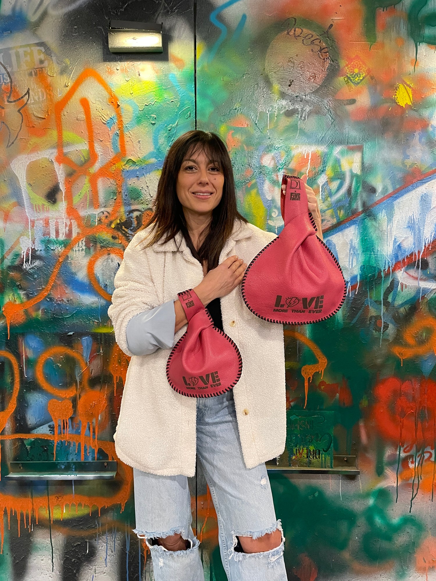 Dmarxx Designer Devan teams up with the incredibly talented, Norwalk CT local artist Fivefingaz to apply his famous "Love More Than Ever" message to our Canteen Clutch bags. We want to continue to share + spread LOVE via art meets accessories not just to our community but world-wide!
